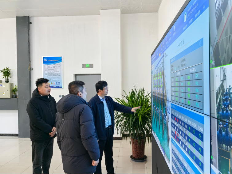 在一號泵站調(diào)度中心,通過數(shù)字孿生平臺的實時演示,全面了解項目智能化管理系統(tǒng)的運行模式和數(shù)據(jù)應(yīng)用效果。魏長學(xué)肯定了平臺在優(yōu)化調(diào)度、應(yīng)急響應(yīng)等方面的功能,并要求進一步強化技術(shù)賦能,提升水務(wù)管理的精細化水平。隨后,在二號泵站現(xiàn)場查看主道路施工進展,詳細詢問道路施工的工期節(jié)點與難點及施工進度情況,要求工作人員加強監(jiān)督與管理,在確保安全和質(zhì)量的前提下,加快推進配套工程建設(shè)。最后來到三號泵站,查看了水泵機組及配套設(shè)備維護情況,檢查了廠房土建防漏防潮措施,提出要加強巡查及日常點檢,確保泵站各項工作安全進行。