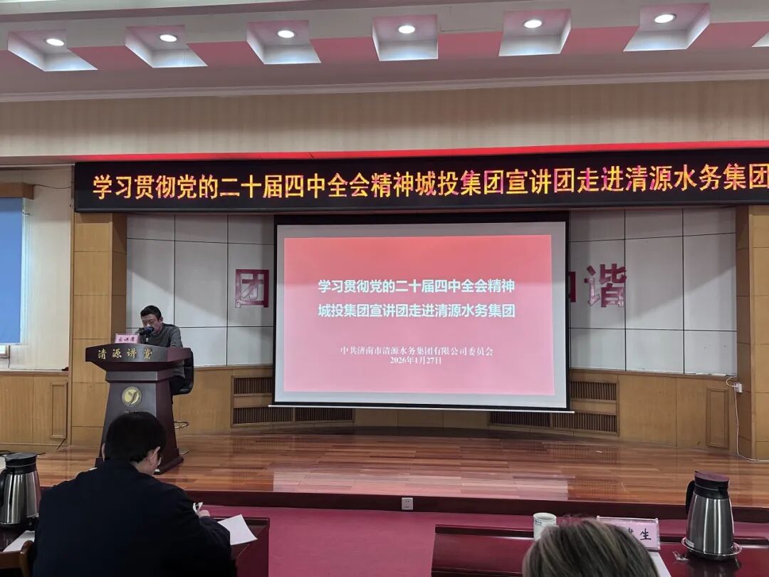 ? ? ? ?為深入學習宣傳貫徹黨的二十屆四中全會精神,完整準確全面把握全會精神實質和豐富內(nèi)涵,1月27日下午,學習貫徹黨的二十屆四中全會精神濟南城投宣講團走進清源水務集團開展專題宣講。城投集團黨委委員、副總經(jīng)理姜建生作宣講報告。報告會由清源水務集團黨委書記、董事長魏長學主持。
